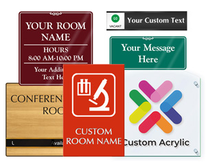 Find the perfect material for your custom signage needs. Our Custom Signs by Material collection includes options for every environment — from sleek engraved plastic signs for offices to durable aluminum signs for industrial settings, and clear or colored acrylic for a modern, polished look.