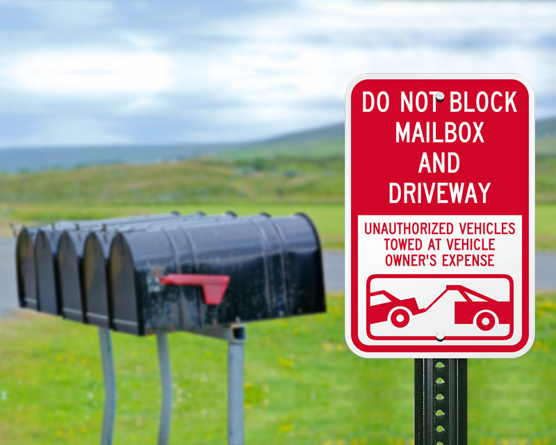 Installing these signs ensures consistent mail delivery by keeping the approach clear for postal carriers. According to USPS guidelines, carriers may skip delivery if access is blocked. A clear do not block mailbox sign or a specific tow-away zone notice alerts drivers that parking in front of your box is prohibited and subject to enforcement.
