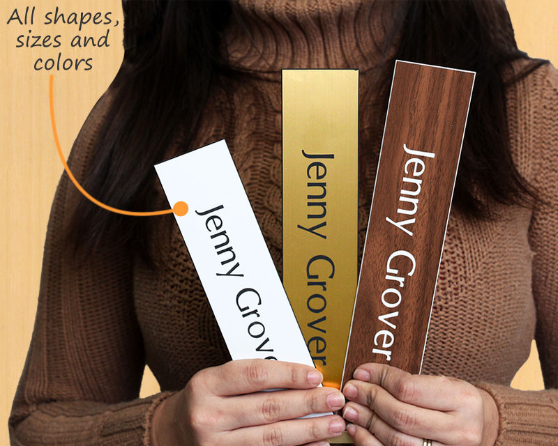 Other types of name plates like desktop plates or cubicle plates have different sets of installation options.