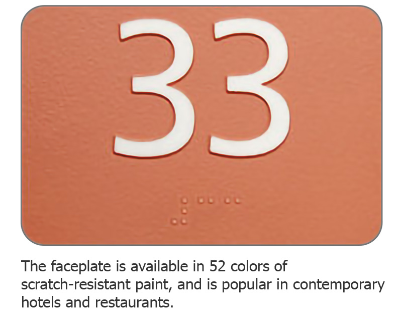 • • Sandblasted acrylic/stone blend will never smudge, while groundbreaking FirstTouchâ„¢ Braille offers responsive touch that meets and goes beyond current ADA standards.
