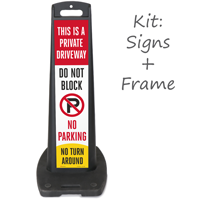 Posting a clearly visible "Do Not Block Driveway" sign is the most effective first step, and our do not block driveway LotBoss portable sign kit is a great option for properties that need a freestanding, highly visible barrier sign that can be repositioned as needed without any drilling or tools.