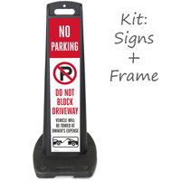 Posting a clearly visible "Do Not Block Driveway" sign is the most effective first step, and our do not block driveway LotBoss portable sign kit is a great option for properties that need a freestanding, highly visible barrier sign that can be repositioned as needed without any drilling or tools.