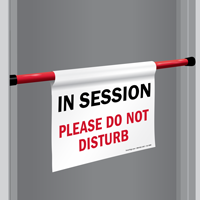 Medical offices, therapy practices, massage studios, law firms, recording studios, photography studios, and training facilities use in-session signs to prevent disruptions during time-sensitive or private activities. You can find options suitable for any location in our medical room signs category.