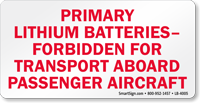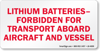 • • Lithium battery forbidden markings follows DOT’s HM-224C requirements for when transporting batteries is not permitted.