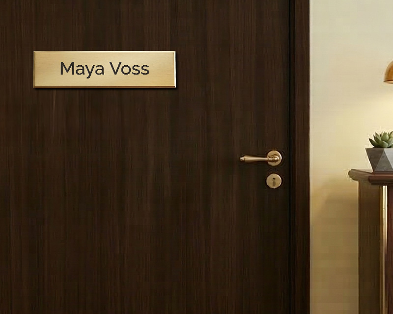 Browse popular options such as 2" x 8", 2" x 10", and 2" x 12" nameplates, widely used for office doors, desk name plates, and room identification signs. These sizes provide enough space to display employee names, job titles, department names, or room numbers while maintaining a clean professional appearance.