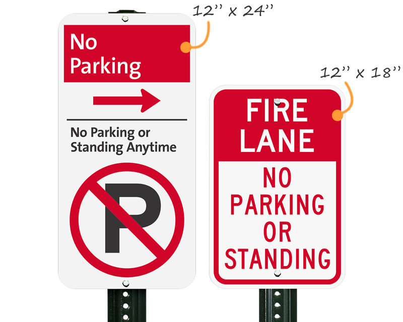 A no stopping sign prohibits all vehicle stops including momentary pauses while a no standing sign allows brief stops to drop off or pick up passengers but prohibits waiting, and our no parking, no standing, and no stopping signs collection makes it easy to find the exact restriction level you need for any zone on your property.