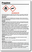 Propylene GHS Label: Chemical Danger, Extremely Flammable Gas, Explode If Heated, Cause Frostbite and Rapid Suffocation with Precautionary Statements, Prevention, Response, Storage and Disposal... GHS-037-A Learn More...