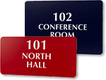 Our collection of door nameplates and wall nameplates is ideal for corporate offices, hospitals, schools, hotels, apartment buildings, and commercial facilities. Each custom nameplate sign provides a clean and professional way to display employee names, room numbers, or department titles.